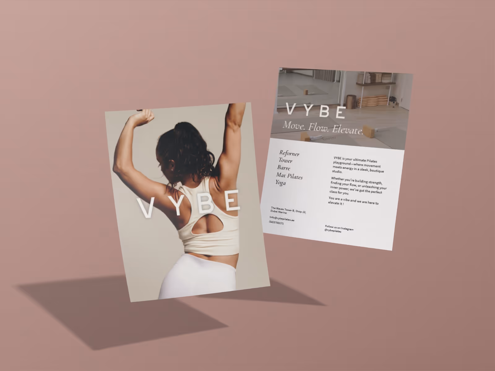 The creative direction was built to position Vybe as a space where grace meets strength. Inspired by the elegance of fashion and the precision of movement, the visual identity embodies a modern femininity: confident, sexy, and serene. It's a studio where each class is depicted as a crafted experience, offering beauty and balance for a multicultural, dynamic community in search of meaningful wellness.